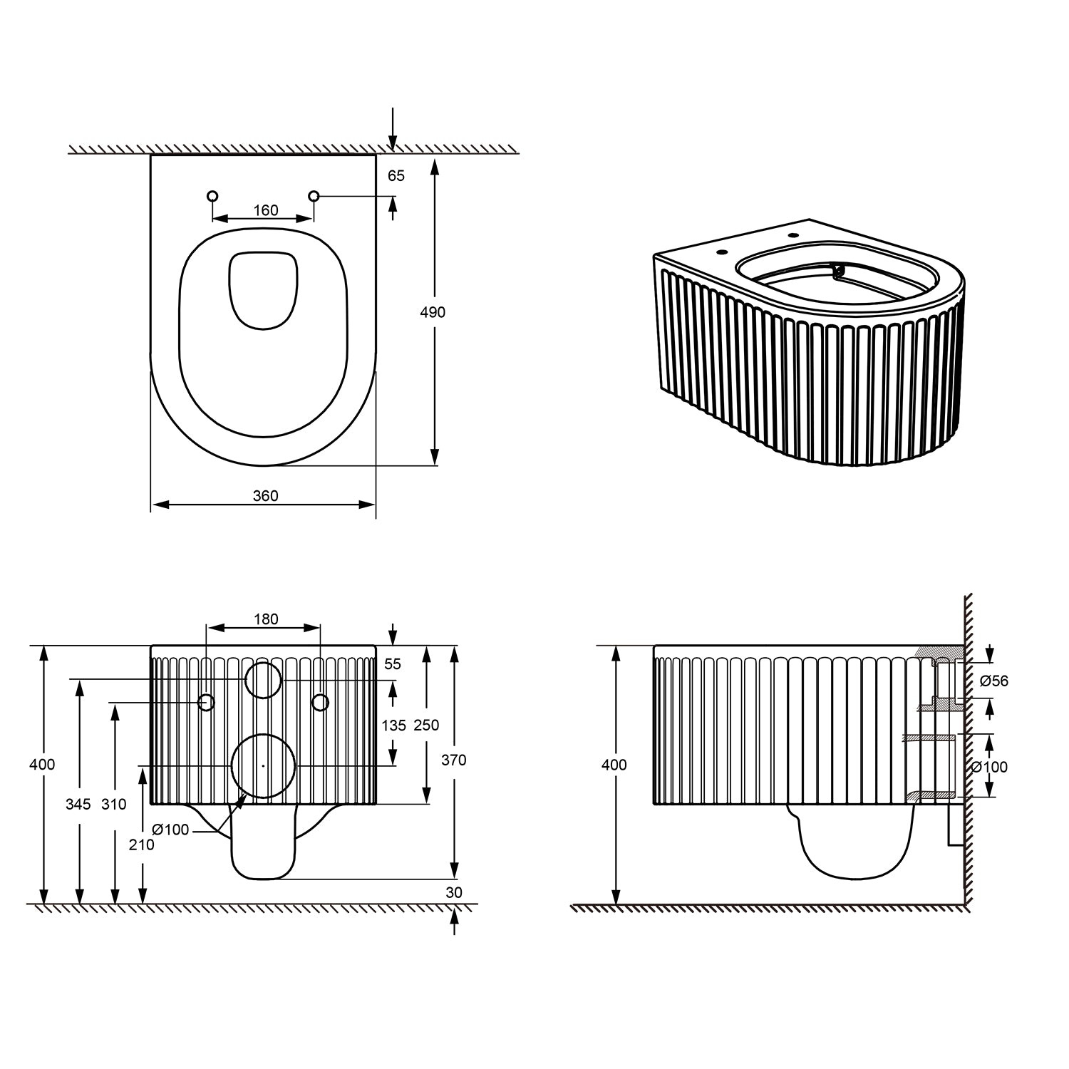 Treos Serie 810 ist ein wandhängendes, spülrandloses Tiefspül-WC mit WC-Sitz, aus gleichfarbigem, hochwertigem Sanitärkeramik mit Glasur und ovaler Form. Der WC-Sitz ist mit Absenkautomatik und abnehmbar und die Befestigung ist unsichtbar. Seine Abmessungen betragen 490 x 355 x 370 mm. Ein Set, das sich durch modernes Design, Haltbarkeit und Widerstandsfähigkeit auszeichnet.